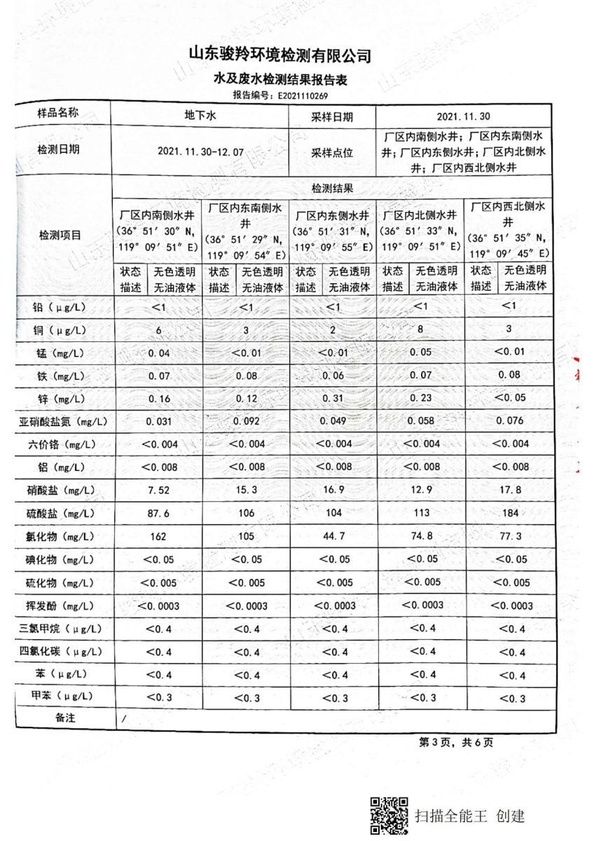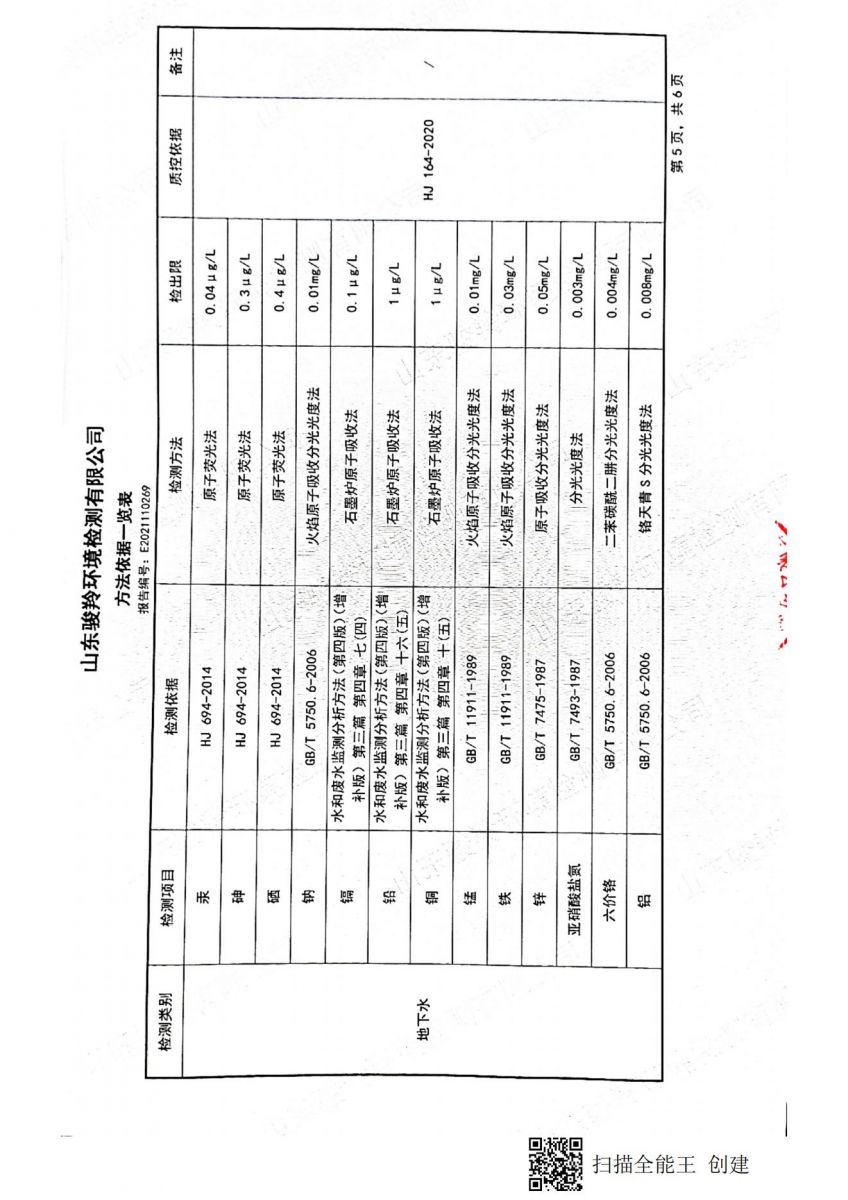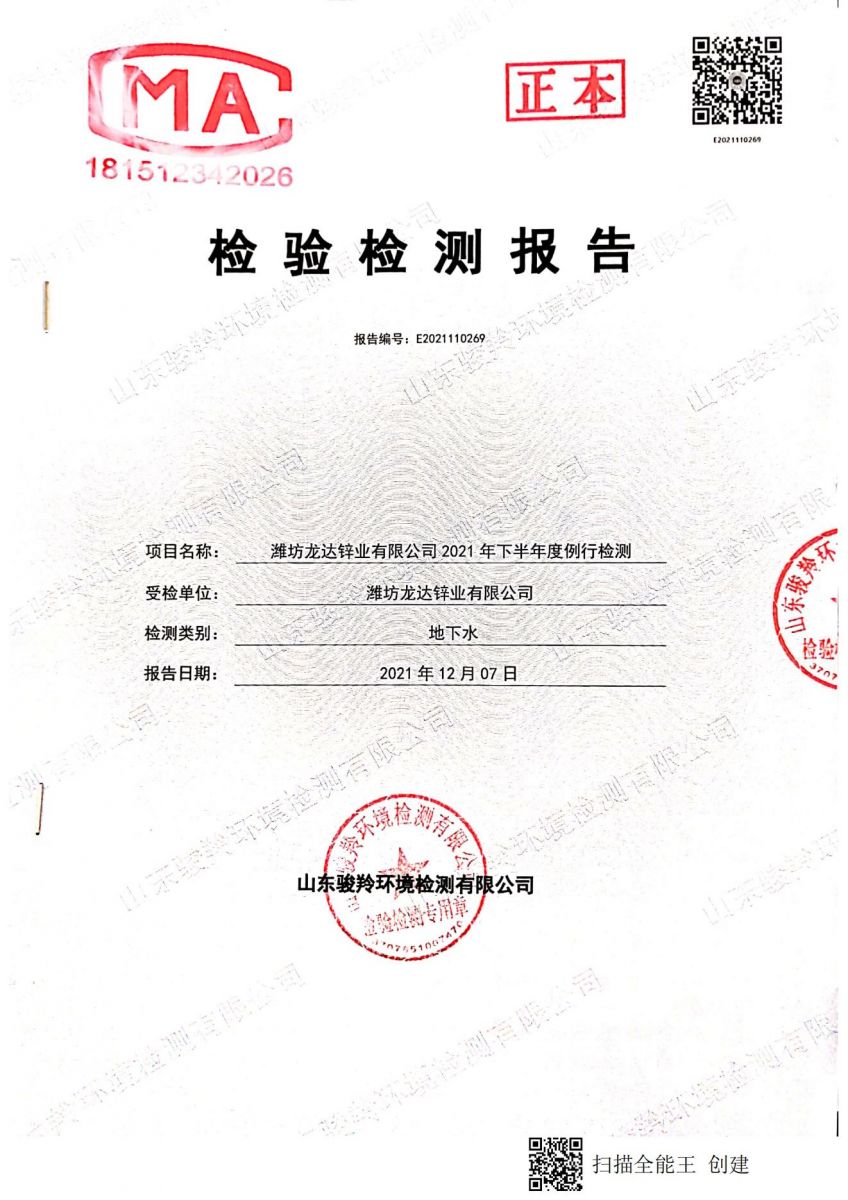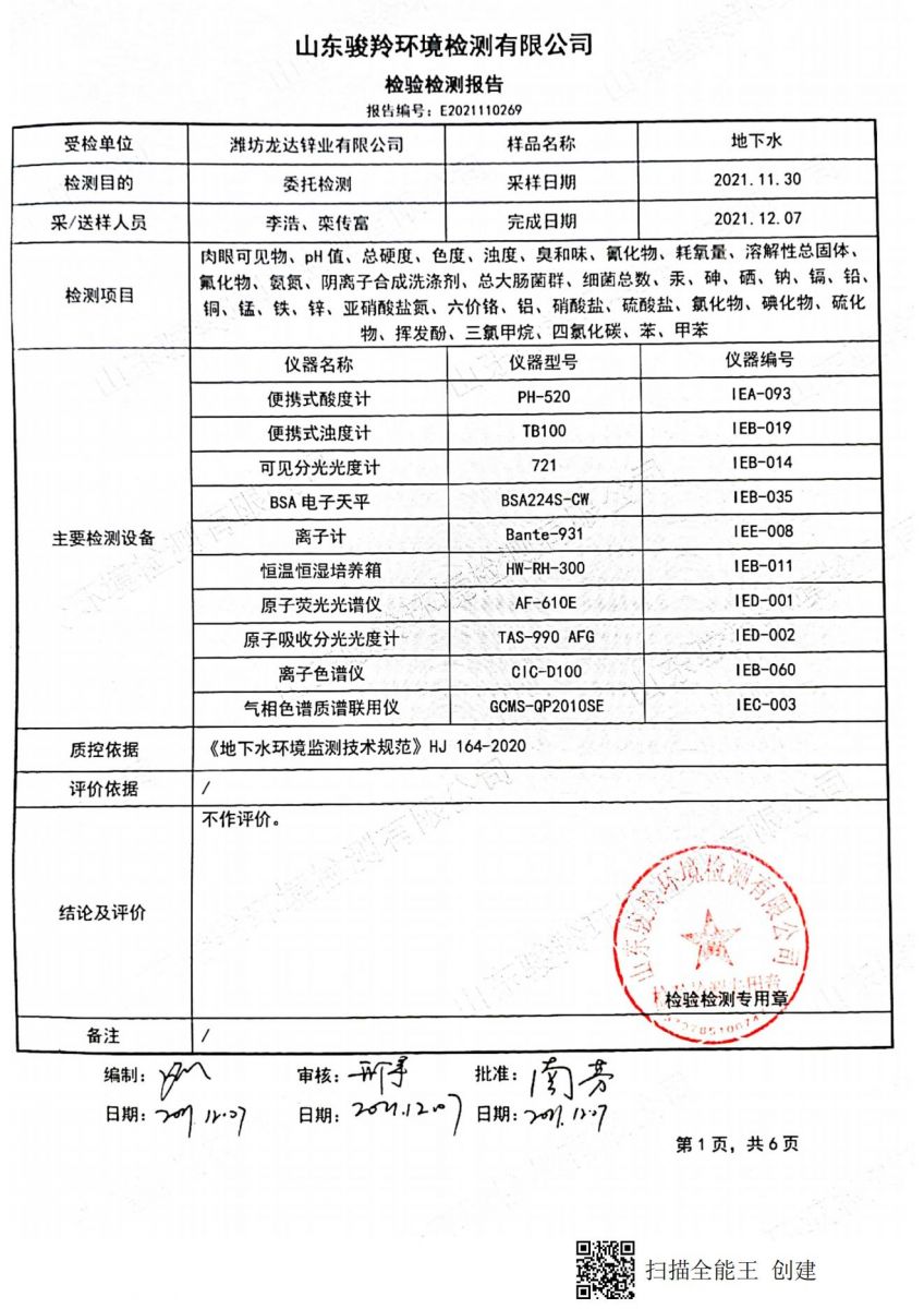 濰坊龍達鋅業(yè)有限公司2021年地下水監(jiān)測報告