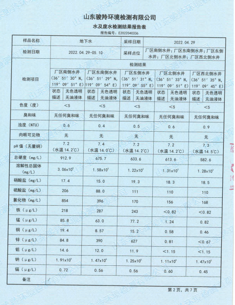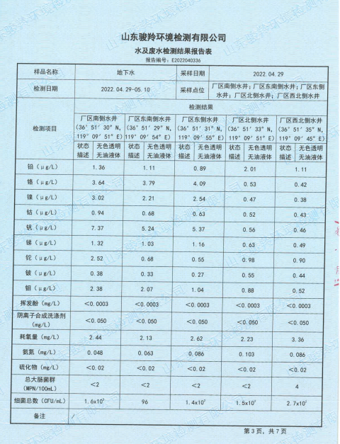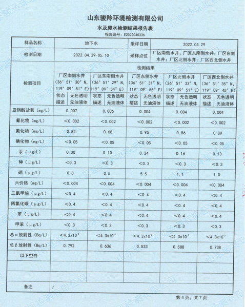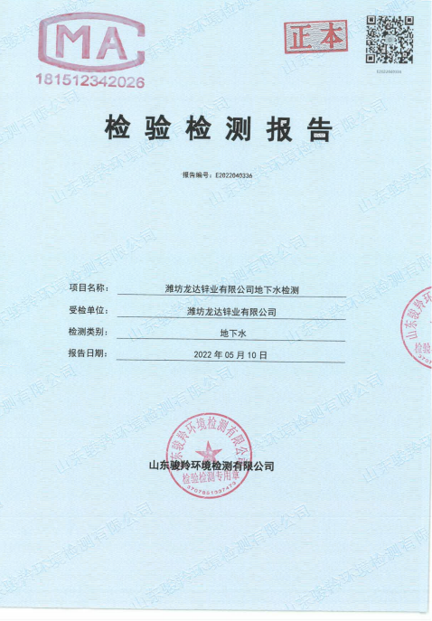 濰坊龍達(dá)鋅業(yè)有限公司2022年地下水監(jiān)測(cè)報(bào)告